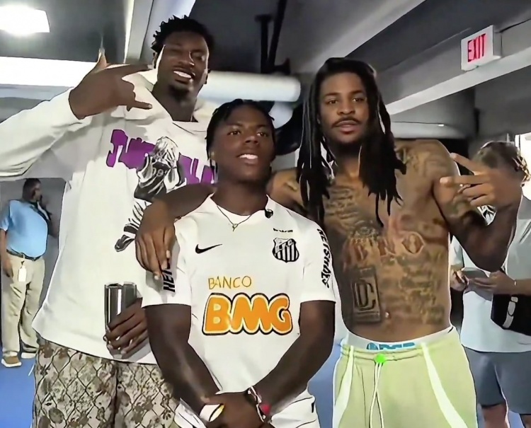 9月12日,知名主播IShowSpeed在孟菲斯直播期间偶遇NBA球星小贾伦-杰克逊与莫兰特。三人合影同框,画面中粉丝与球星的界限显得格外模糊。